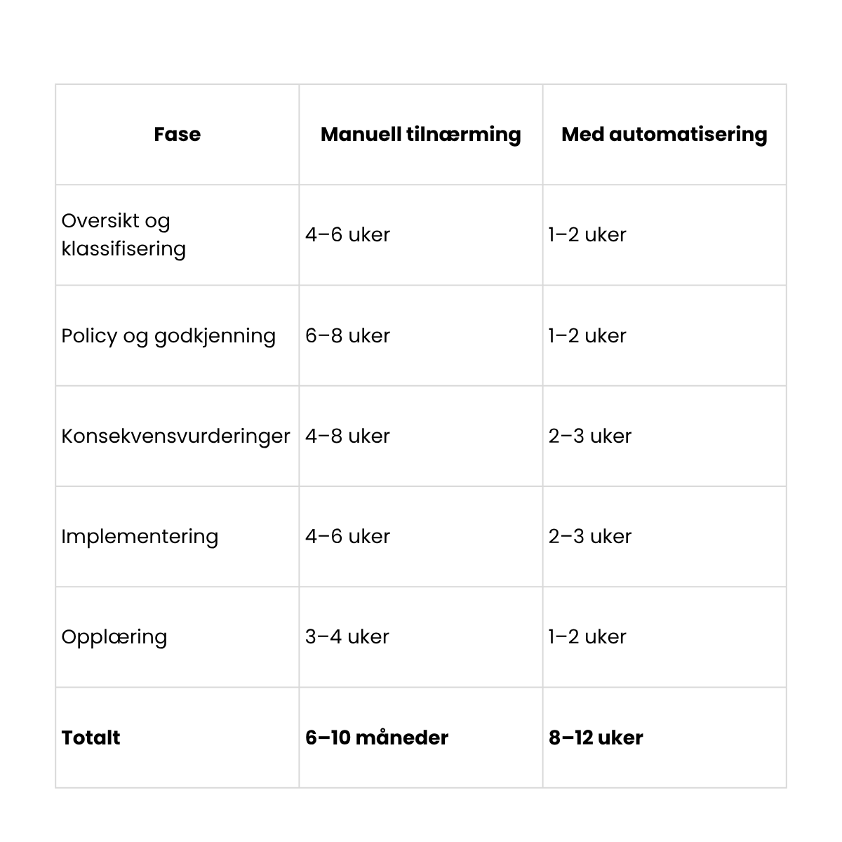 For selskaper som også jobber med ISO 42001, overlapper styringsarbeidet nesten helt.